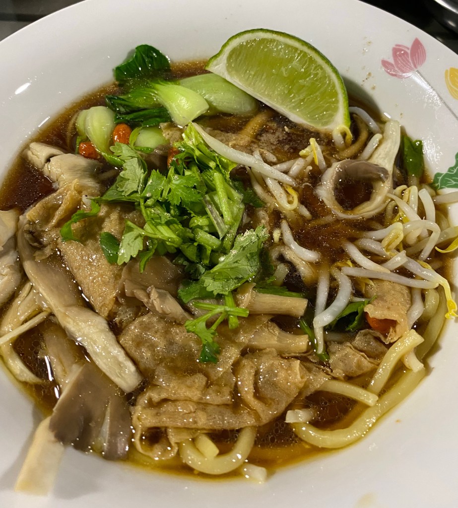 - 纯素 Vegan and Allium Free Thai Super Tin Kai(纯素泰式粿條湯)My dinner tonight is an experiment and a Thai common food but hardly found anywhere overseas. Made it allium free and vegan! It’s called Super Tin Kai in Thailand and uses chicken feet normally. It’s an aroma rich broth, a tinge of sourness from the lime; sweetness from the coconut cane sugar I used andContinue reading “纯素 Vegan and Allium Free Thai Super Tin Kai(纯素泰式粿條湯)”