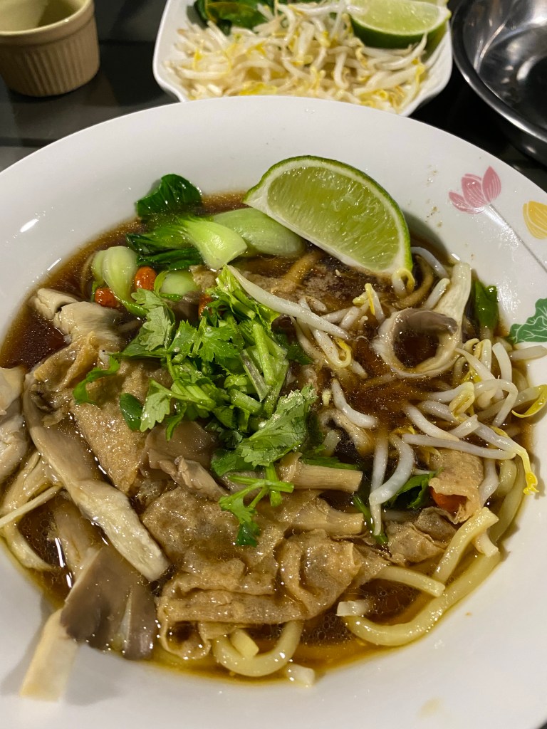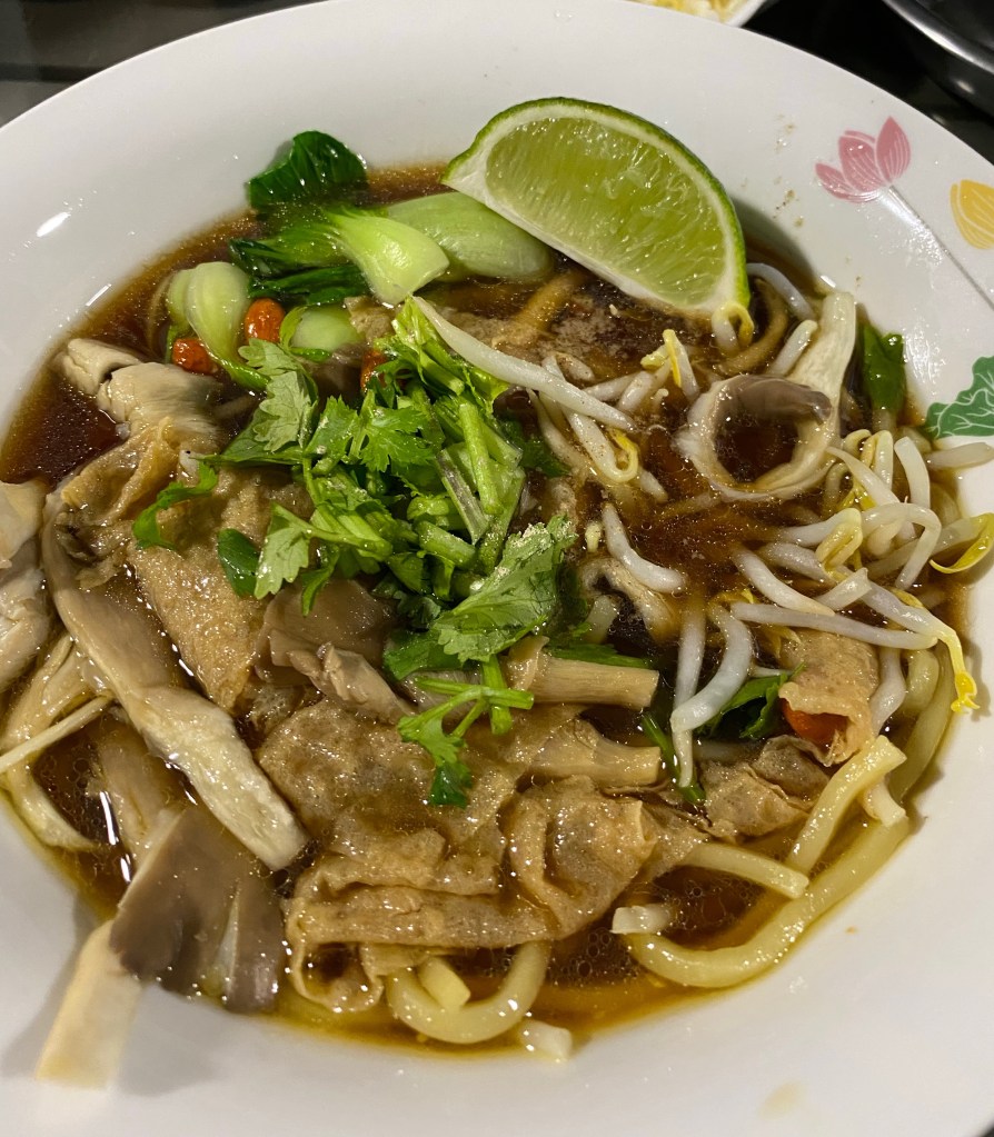 My dinner tonight is an experiment and a Thai common food but hardly found anywhere overseas. Made it allium free and vegan! It’s called Super Tin Kai in Thailand and uses chicken feet normally. It’s an aroma rich broth, a tinge of sourness from the lime; sweetness from the coconut cane sugar I used and soy sauces and veg oyster sauces give it the umami flavor. Would like to share how I make it but need more time. No exact recipe coz it’s an experiment! However I have plenty of photos to let u see what I put in. Let me know if you tried it and how it tastes. My son said it taste a bit like our Chinese bah Kut teh.