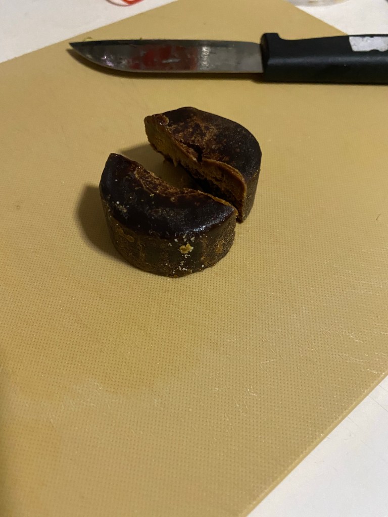1piece of gula Melaka round one (一片圓形的椰子糖)