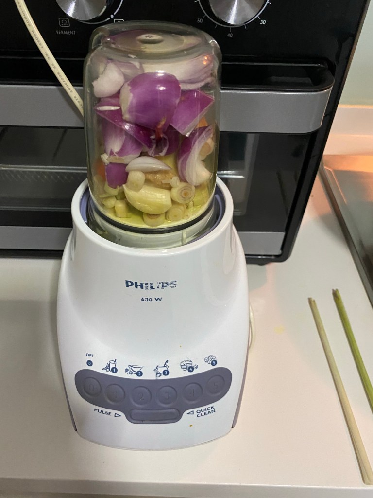 I will blend all these in a blender 把以上的香料放进搅拌机搅拌成膏。