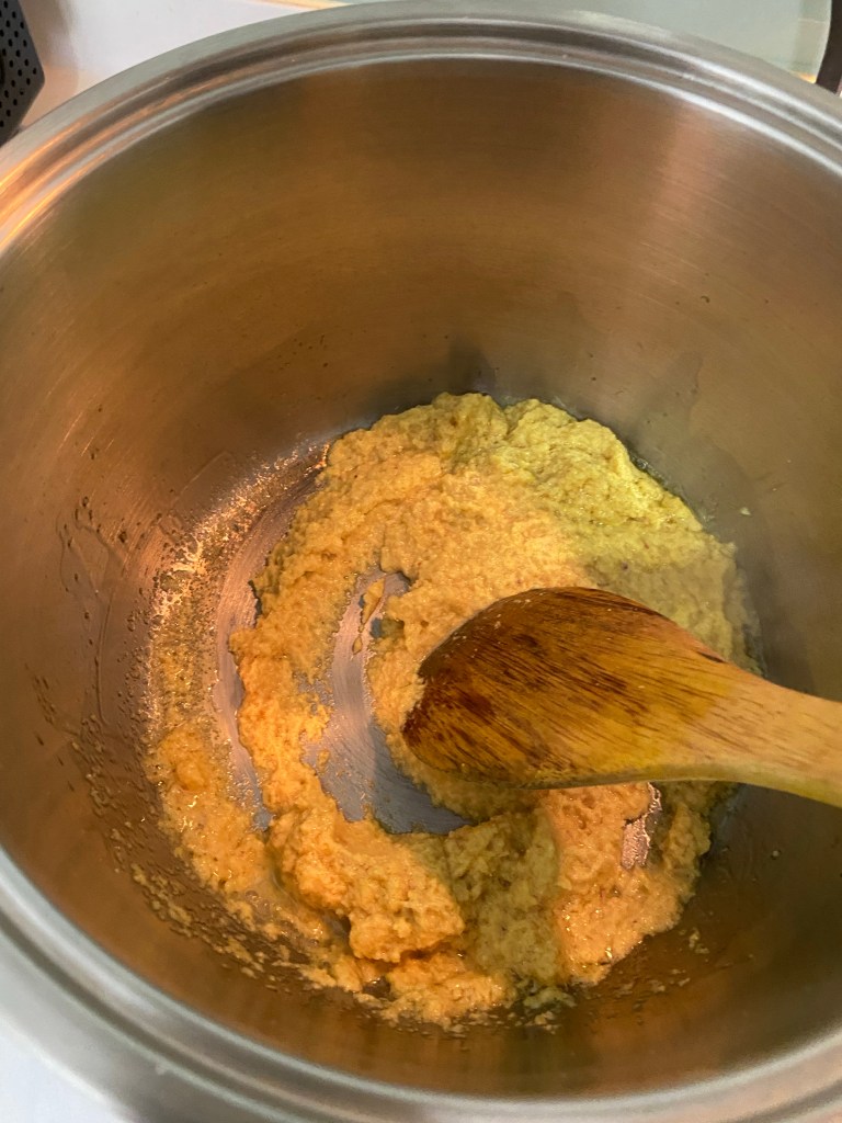 (B) 准备要搅拌的香料 (preparation of blended wet spice paste)