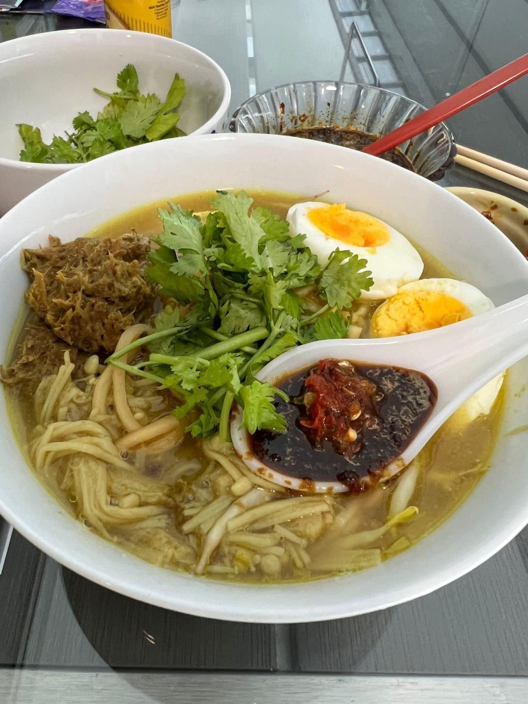 你可以放您喜欢的菜还有豆芽。最重要还是汤底。汤好吃😋,面就好吃。 you can put any veges you like and bean sprouts. Importantly, the soup base and spices used are correct and rightly seasoned. Whatever veges you use is up to you .
