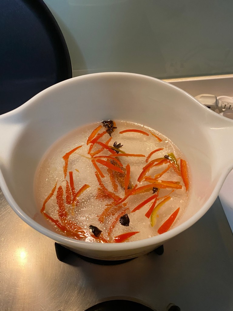 3 big red chillies, seeds removed and cut into thin strips (3条大红辣椒🌶️,种子去掉,切成丝)