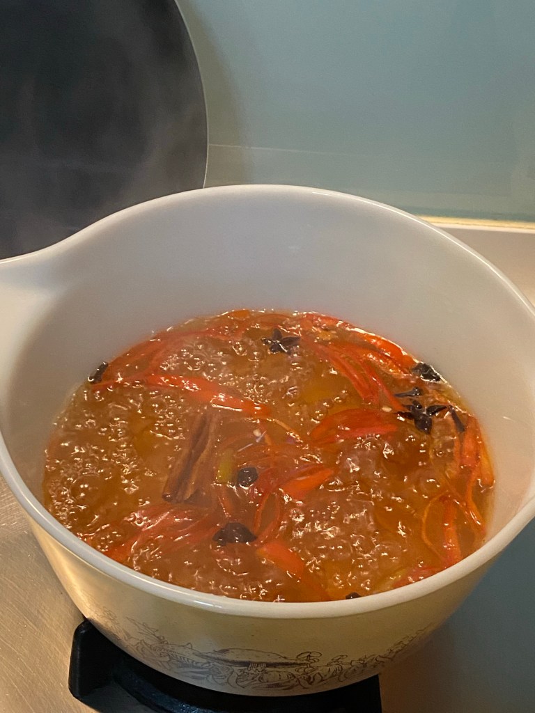 – Put Apple-lime juice to boil, add in 180g of sugar slowly and stirring, then add 2 level teaspoons of agar powder. Stir till completely dissolved and turn of heat.
