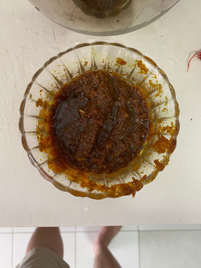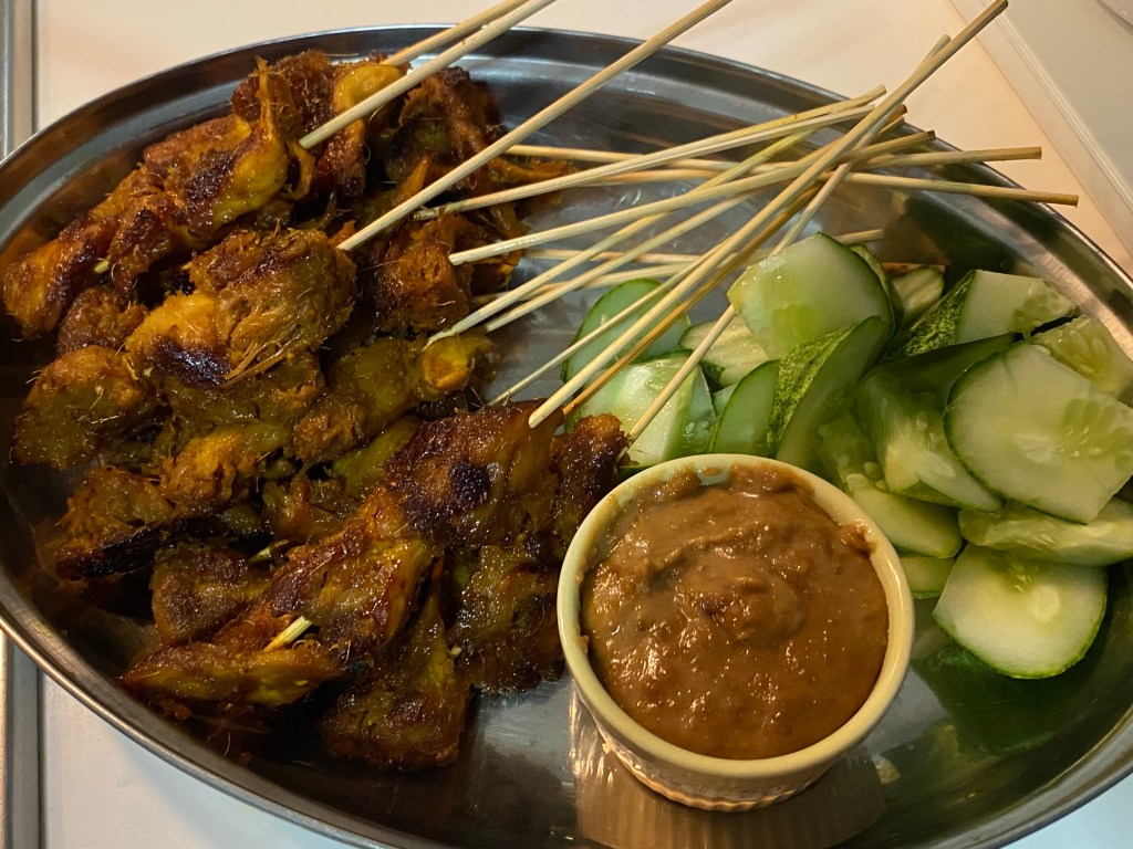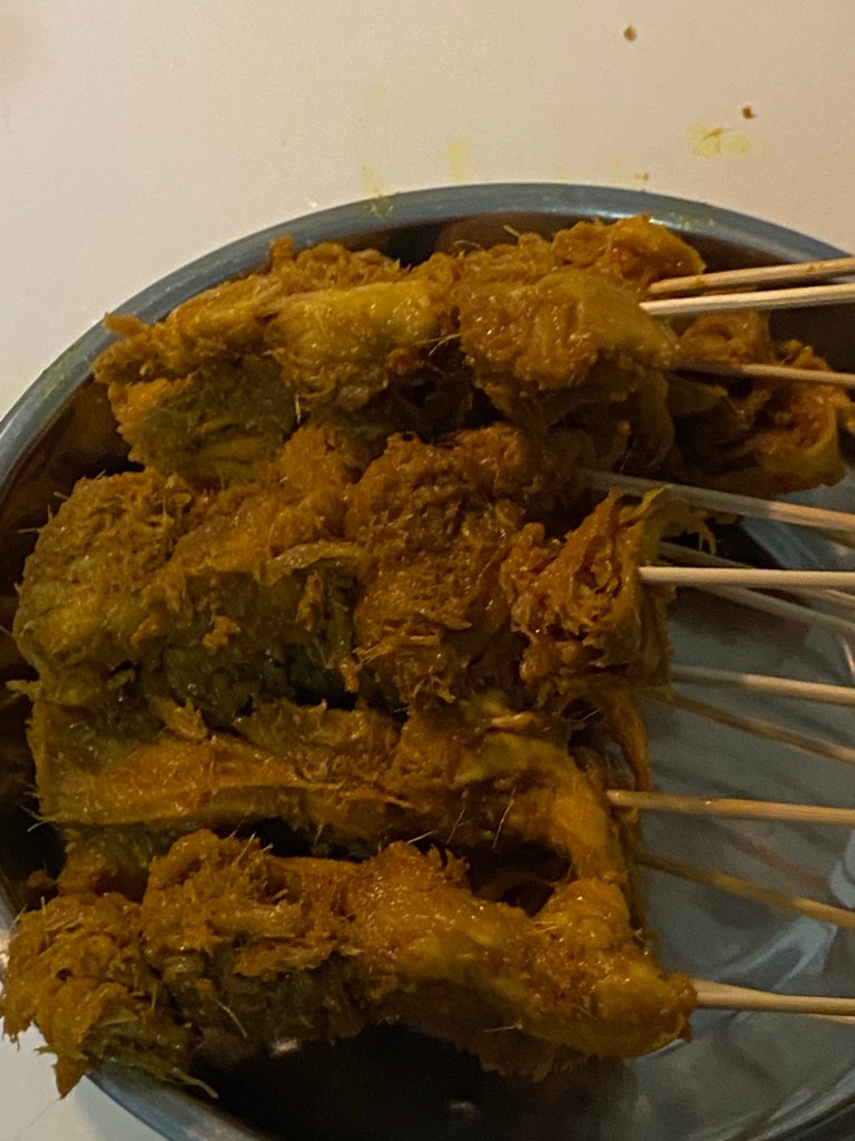 I don’t have an exact recipe for the satay, except the spice ingredients and the procedure to marinate it well. I am not satisfied with my peanut paste, and believe I can take it up to a better level in my next attempt at satay. Thus I won’t provide you the recipe for the peanut paste. However, you could use this recipe link from Rasa Malaysia which I used as a reference for my satay: https://rasamalaysia.com/recipe-chicken-satay/