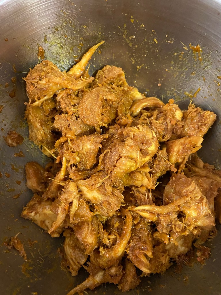 It’s my first time converting a meat recipe to a vegetarian one. I honestly have to thank some Pioneers in some cooking groups who joined and in the vegetarian food society in Singapore such as Uncle Victor of Victor Satay at Circuit Road and Aunty Anna Chua, whose food inspired me to try to do it myself on my own for the first time.