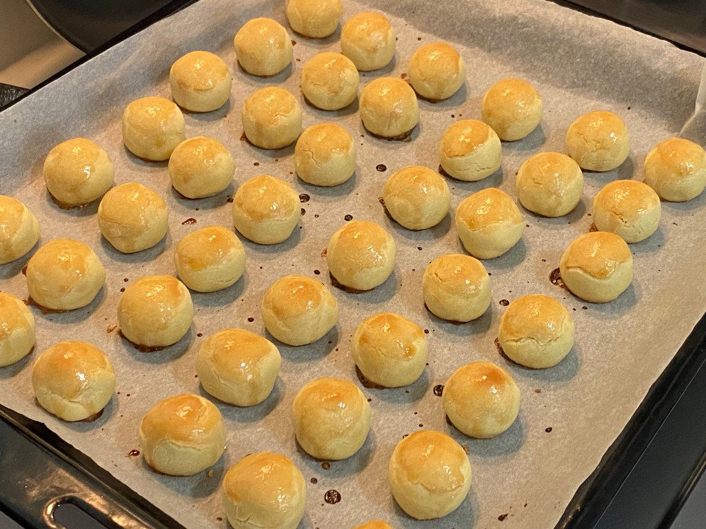 These are my most recent eggless vegetarian pineapple tarts. An improved version of my eggless wash: